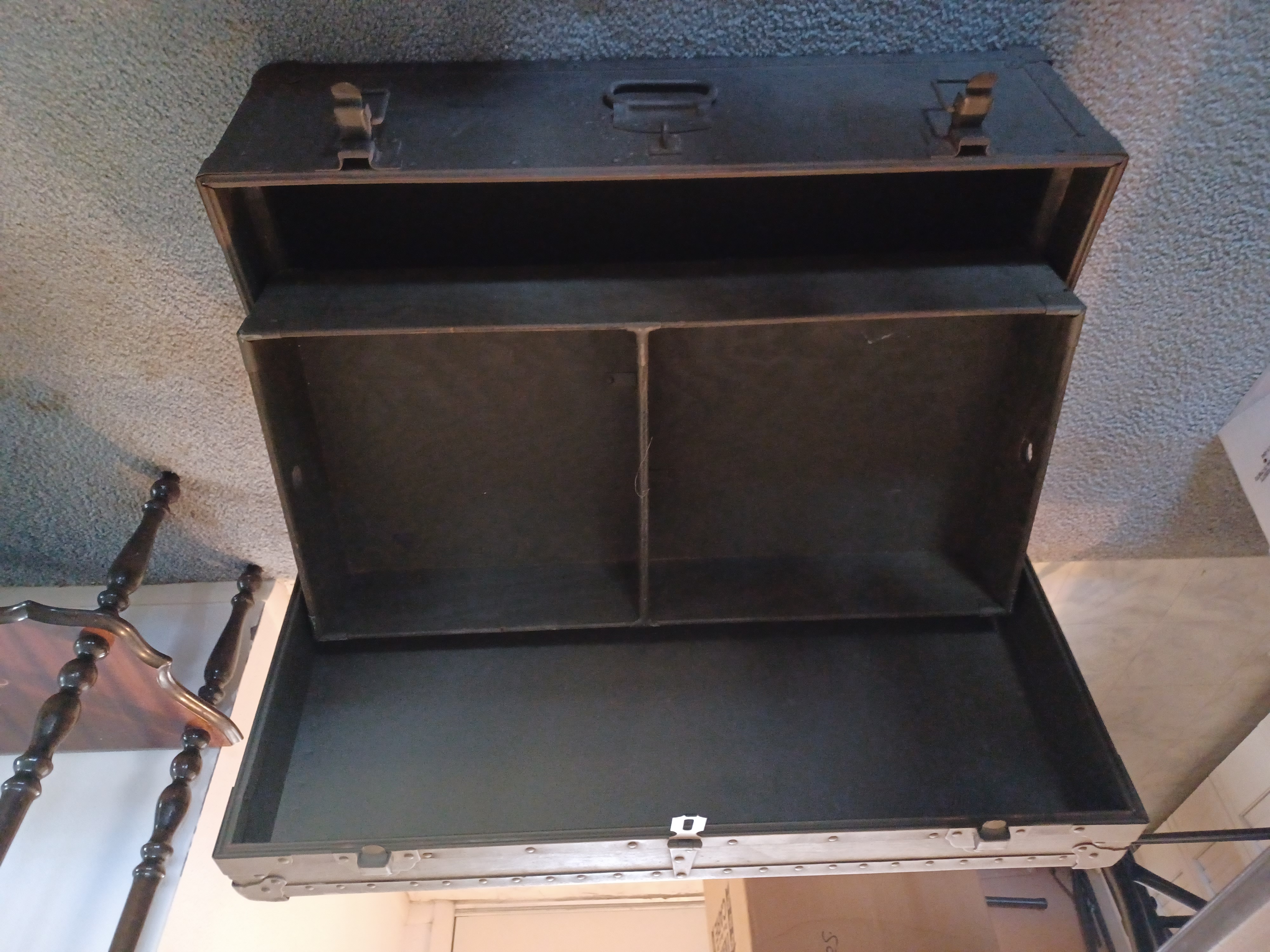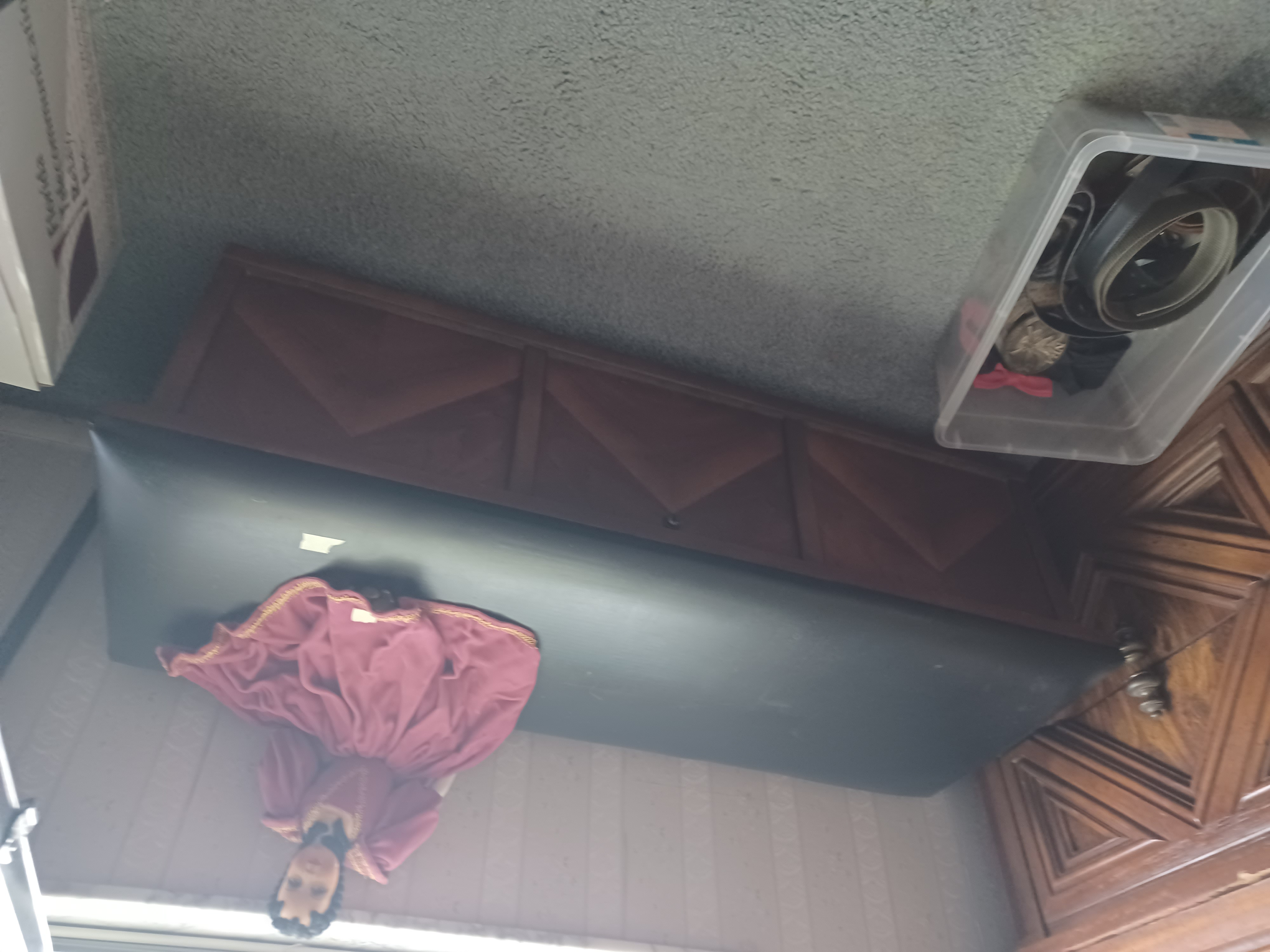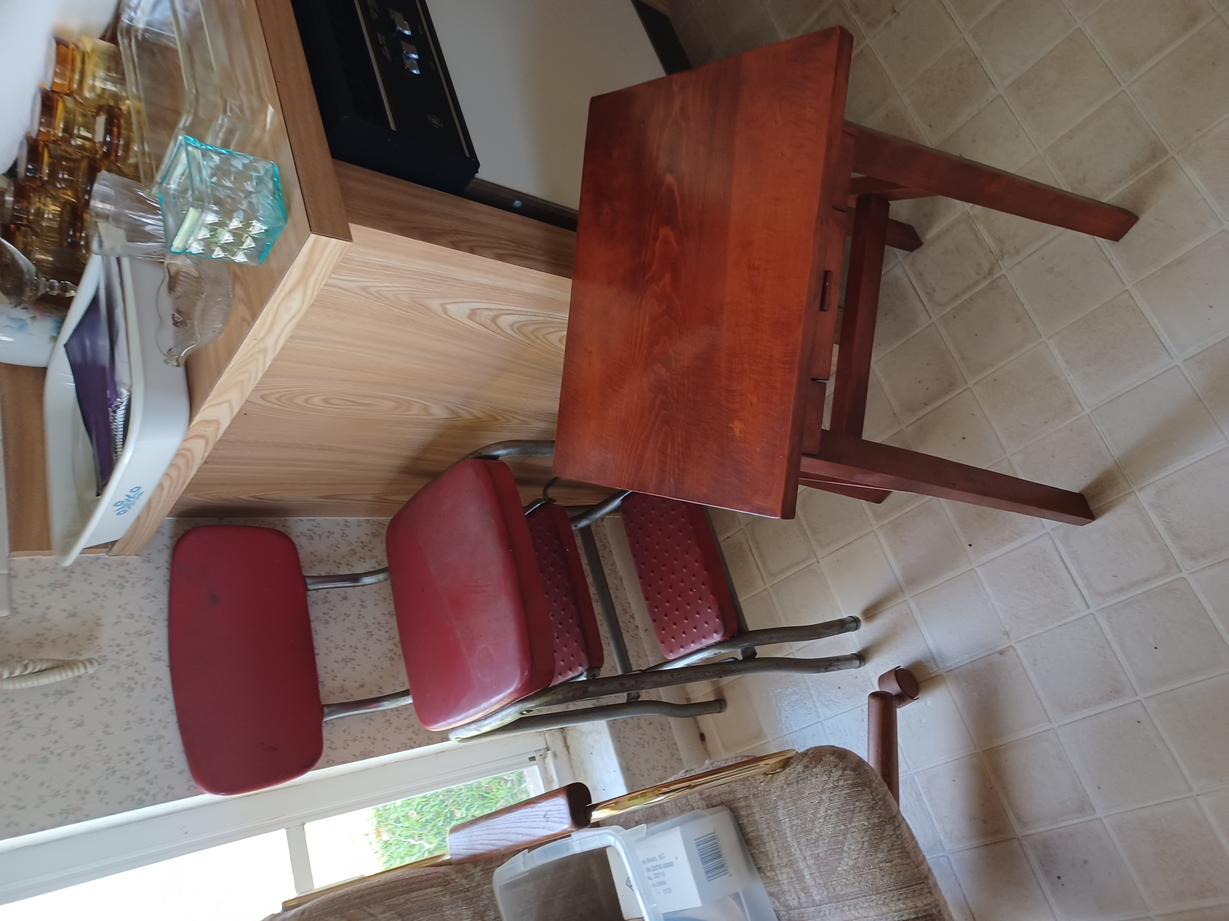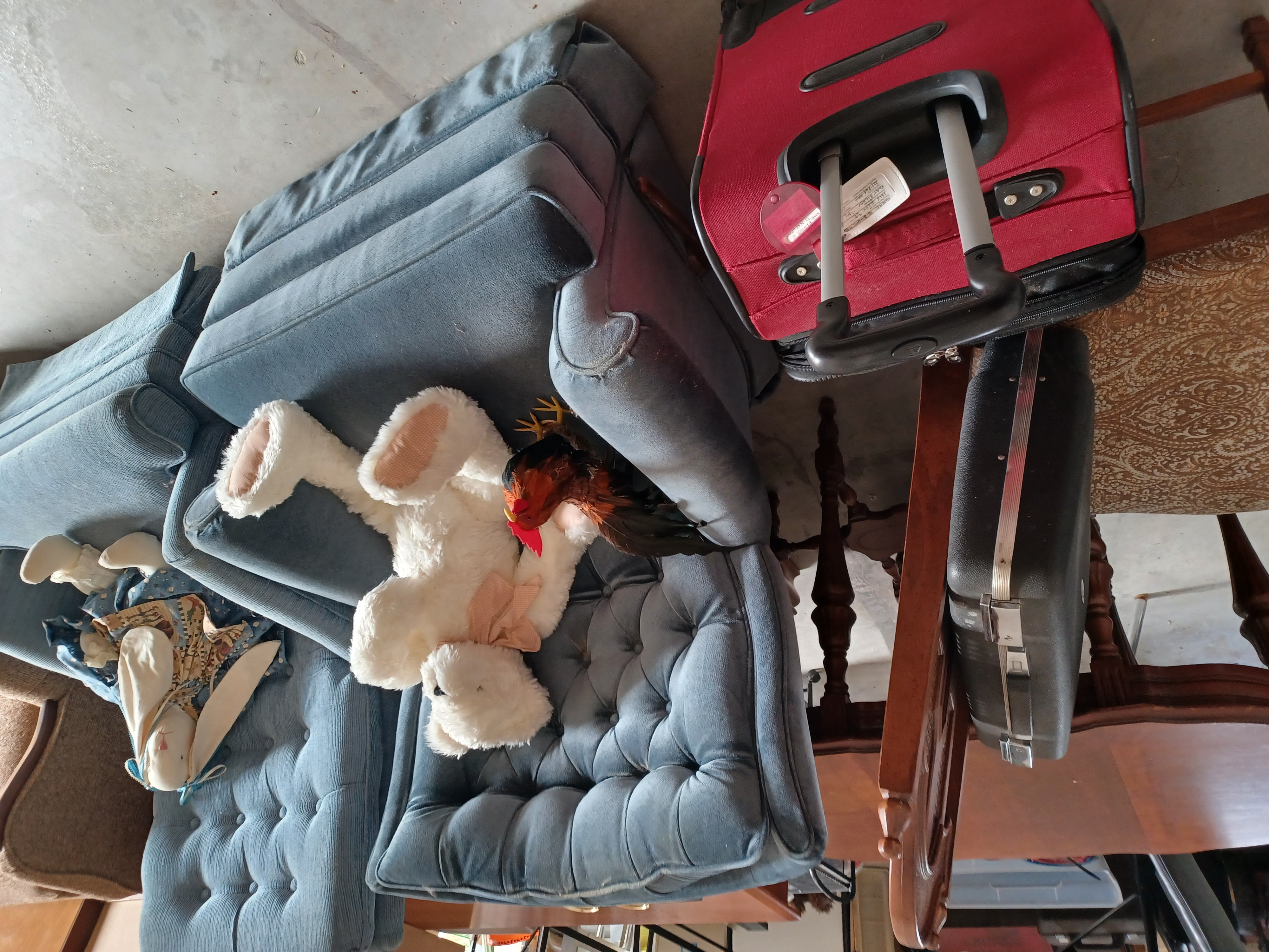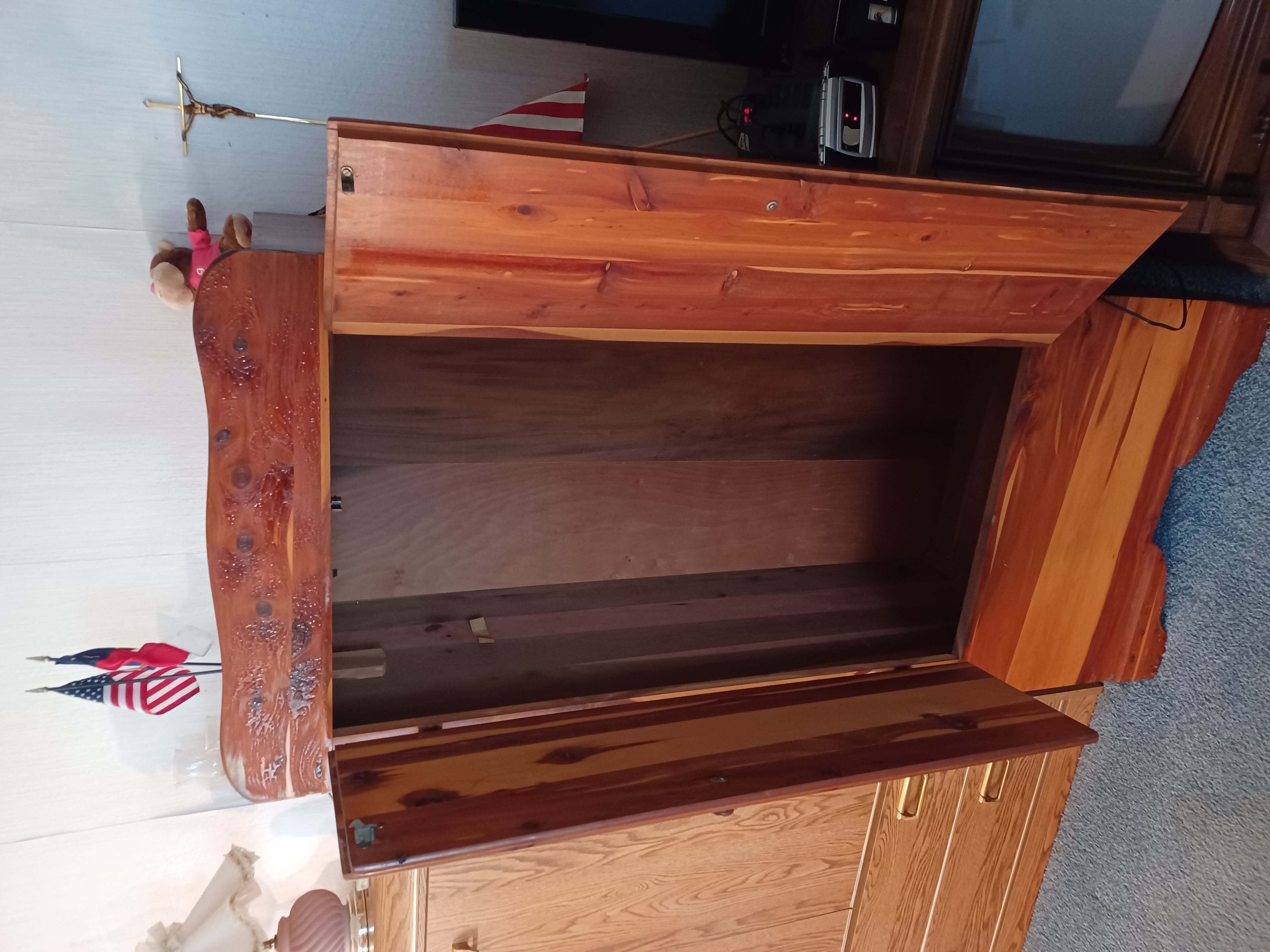 You’ll also find a vintage Singer upright sewing cabinet with machine, smaller bedroom furniture pieces, and a hope chest with a padded seat.