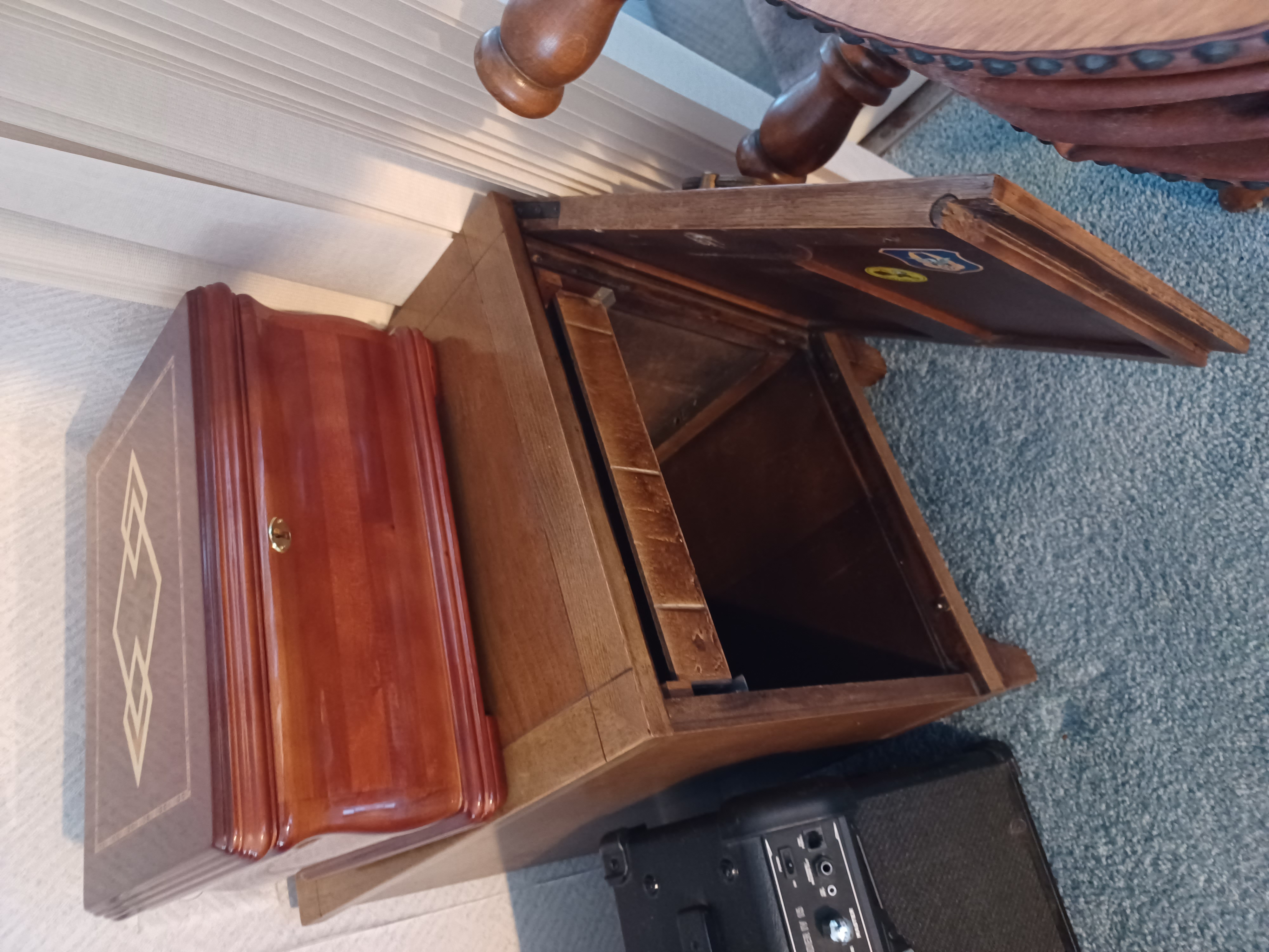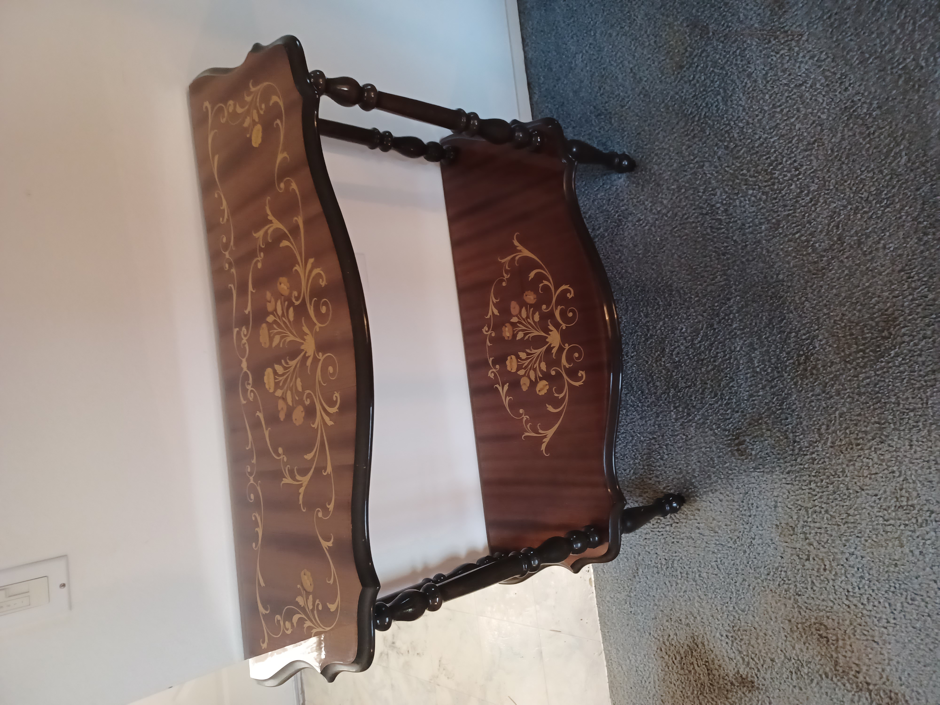 This sale features a wide variety of beautiful and unique items, including vintage and Mid-Century Modern pieces such as a Lane “Acclaim” end table, guitar pick table, record cabinet, MCM sofa and chair, dresser with double mirrors, and chest of drawers. There’s also an Italian hall table, quilt rack, curio cabinet and large hutch, bookcases, desks, mirrors, jewelry cabinets and chests, humidors, a recliner, and more.