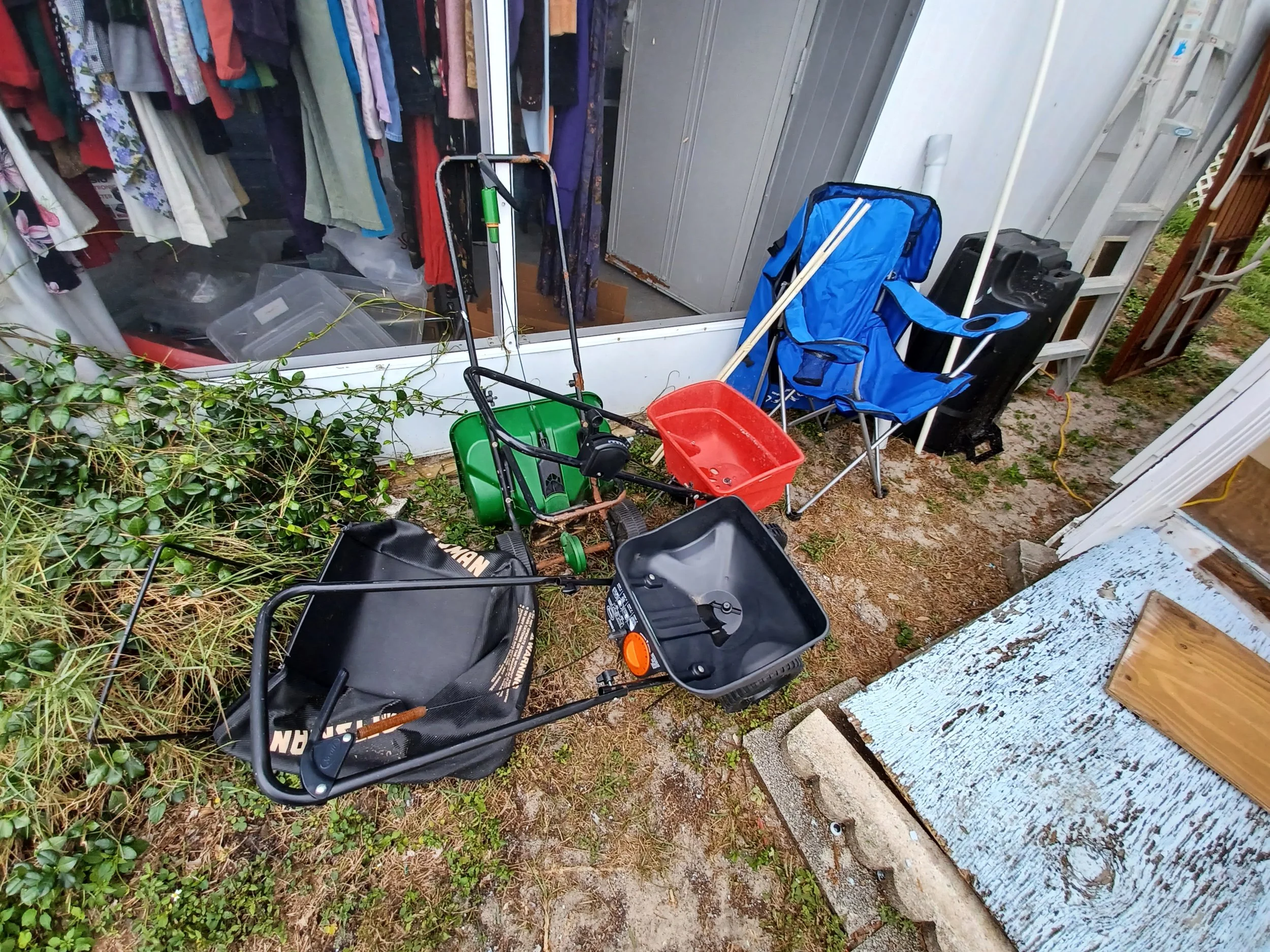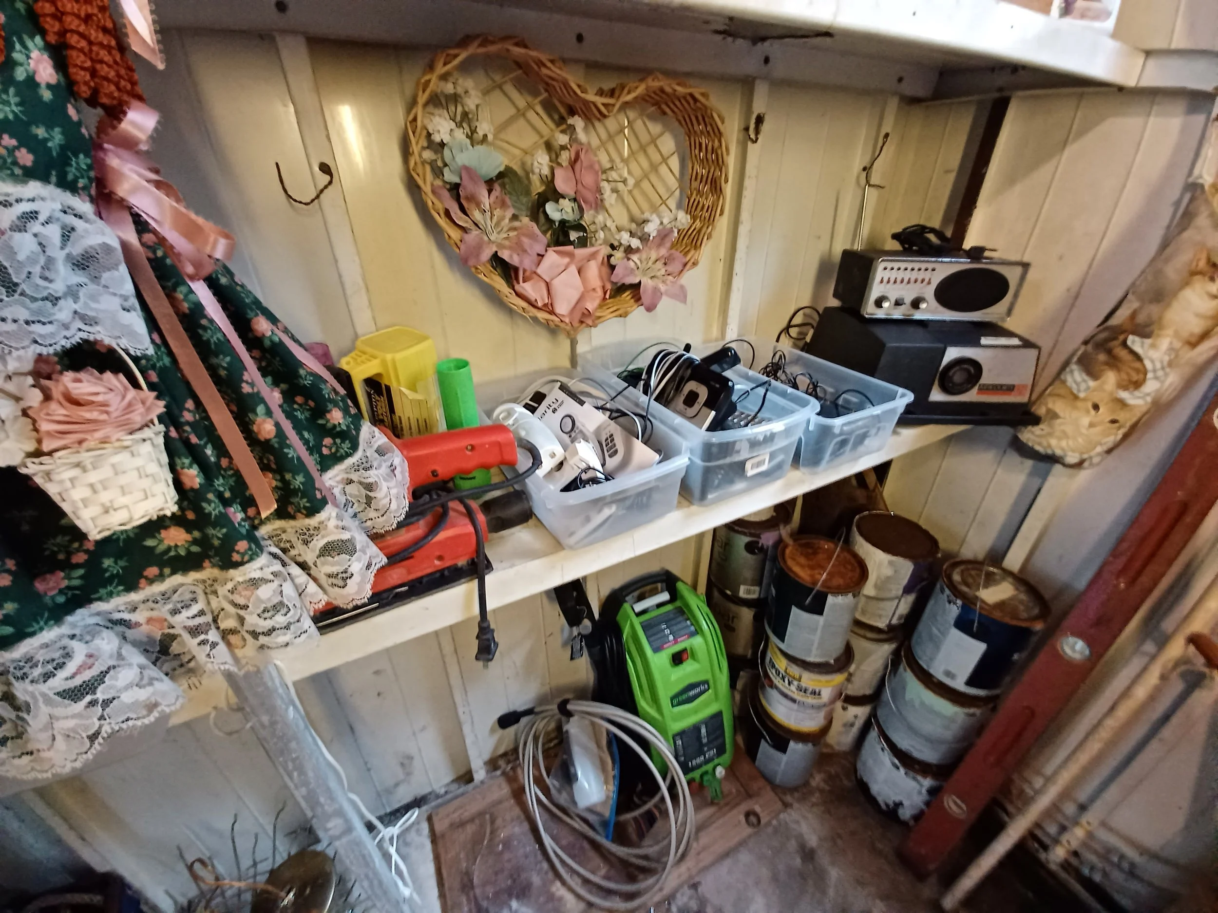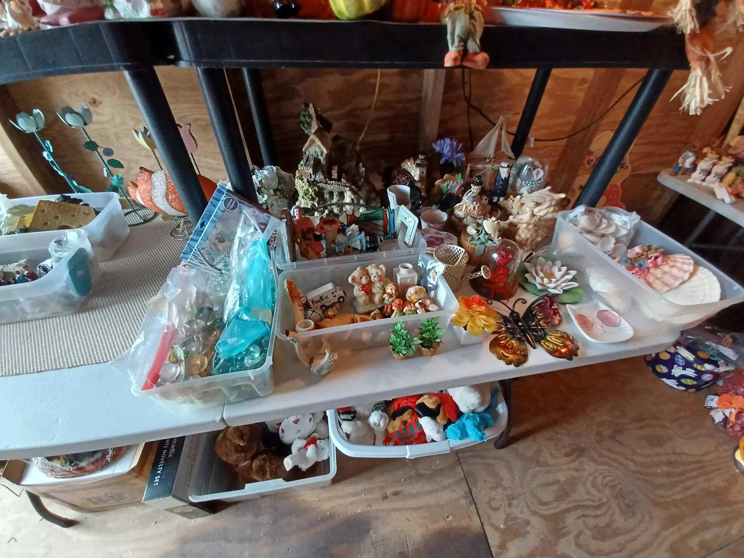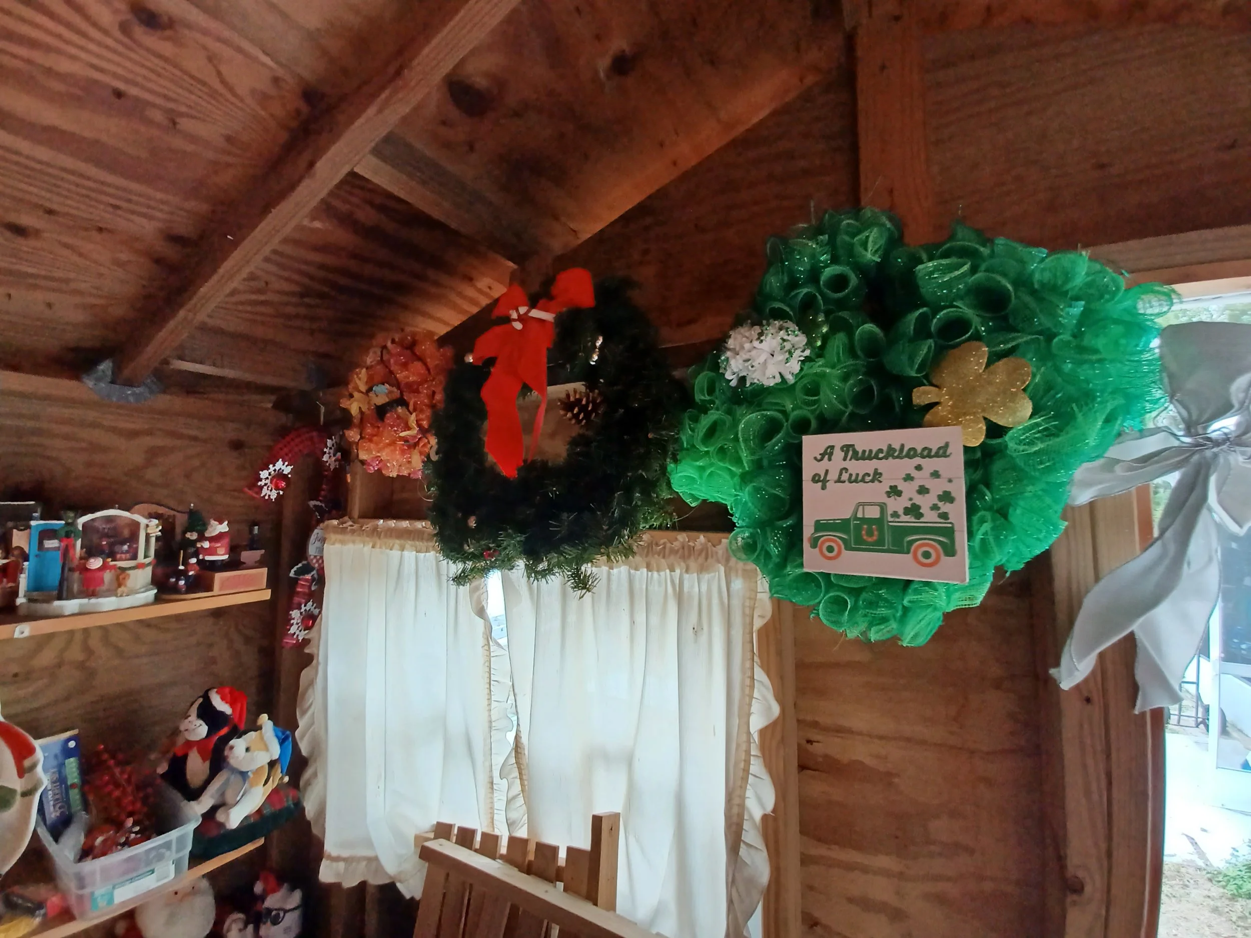 Shed is nothing but holiday stuff.. Every Holiday item is in it!!! Also a vintage Doll House. Shed is also for sale. To be removed after SALE Event.. 10’x14’ shed with 4 foot wide opening double doors and a Front Window!! Will NEED PROFESSIONALLY MOVED!!! Inquire to Hudson Sheds!! Might be able to help…