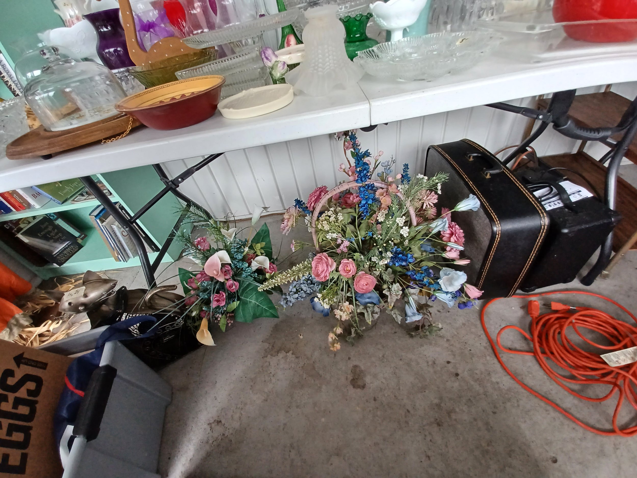 PVC Patio set, Lawn Equipment, and furniture, A Lowry Organ, Accordion, and Fender Electric Guitar. Will get particular on these items about Monday. Basset Bedroom Set Dresser/Mirror and Chest along with 2 night stands, a second Bed only, Secretary Desk, 2- 5 pc dinette Sets, hutch, 2 Sofas, a love seat, recliner, many lamps.